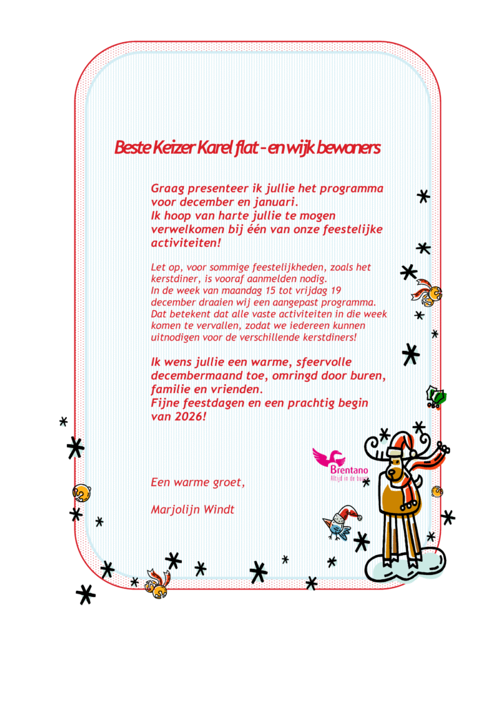 Dan kunt u telefonisch contact opnemen met de Sociaal Cultureel Werker, Marjolijn Windt of haar een mail sturen op m.windt@brentano.nl